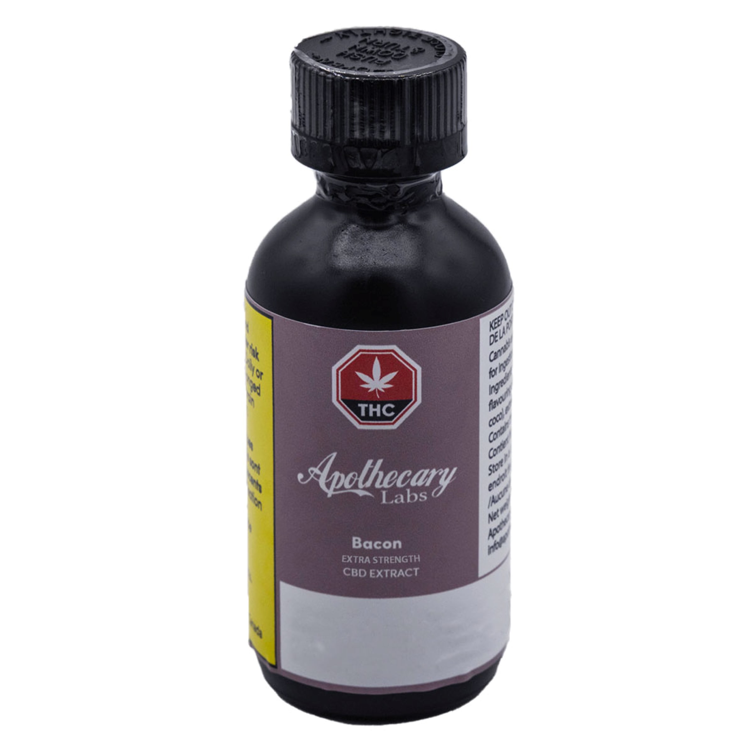 Apothecary Labs CBD bacon extract oil – with a simple formula, made from simple ingredients and broad spectrum CBD. The CBD is extracted from hemp plants grown and processed in BC and then natural bacon flavour is added to get that awesome bacon flavour and aroma! Olive oil is used as the carrier in this bacon-flavoured tincture. It is a 30ml bottle which means there is about 10mg CBD per ml of tincture. This tincture also comes with a graduated dropper for easy dosing.